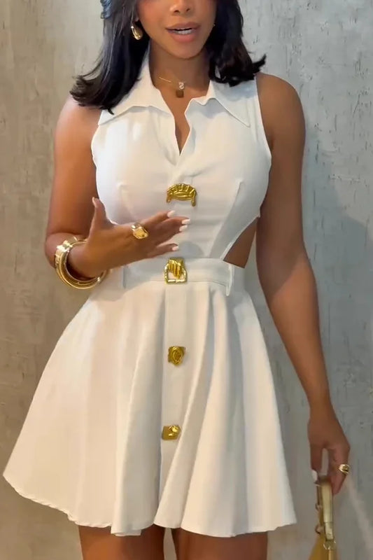 Ladies' Lapel Splicing Hollow Metal Button Temperament and Leisure Dress