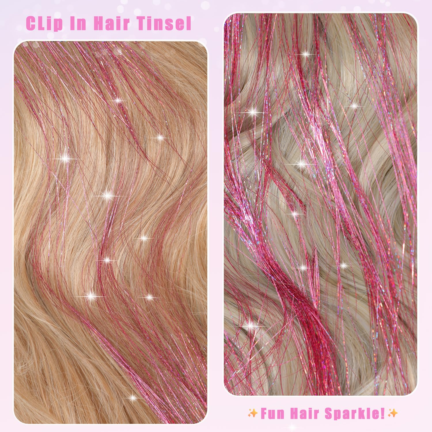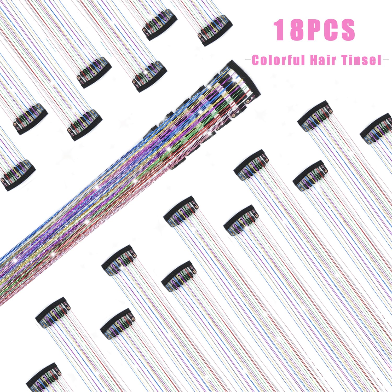 This Clip-In Rainbow Tinsel Instantly Delivers Dazzling Highlights for a Head-Turning, Glamorous Look.