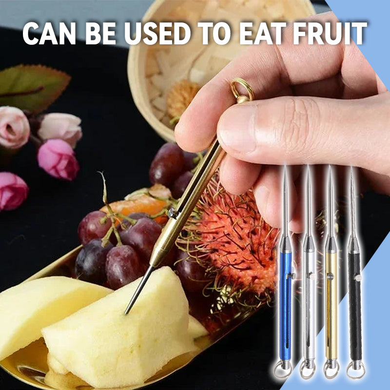 conveniently extending or retracting the toothpick with a gentle push. Say goodbye to messy and unhygienic toothpick storage—this tool keeps your toothpicks clean, safe, and ready to use. With its versatility, it's more than just a toothpick, it's perfect for grill picks, fruit picks, opening cell phone tray slots, cleaning teeth, and more. Whether you're at home, on the go or enjoying the great outdoors, this titanium toothpick is the perfect companion for maintaining oral health and hygiene.