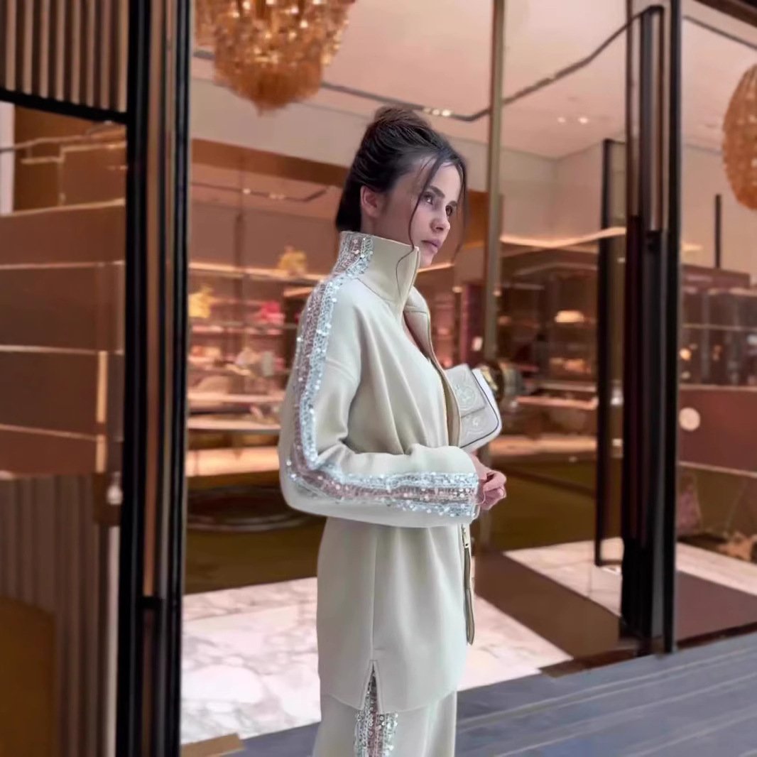 🖤🌟Elevate your casual style with sparkle! This set features a cozy drawstring zipper sweatshirt adorned with sequin patchwork and paired with chic, stretch wide-leg pants.✨ Perfect for a stylish yet relaxed look, this outfit effortlessly blends comfort and glam Ideal for stepping out or lounging in style!