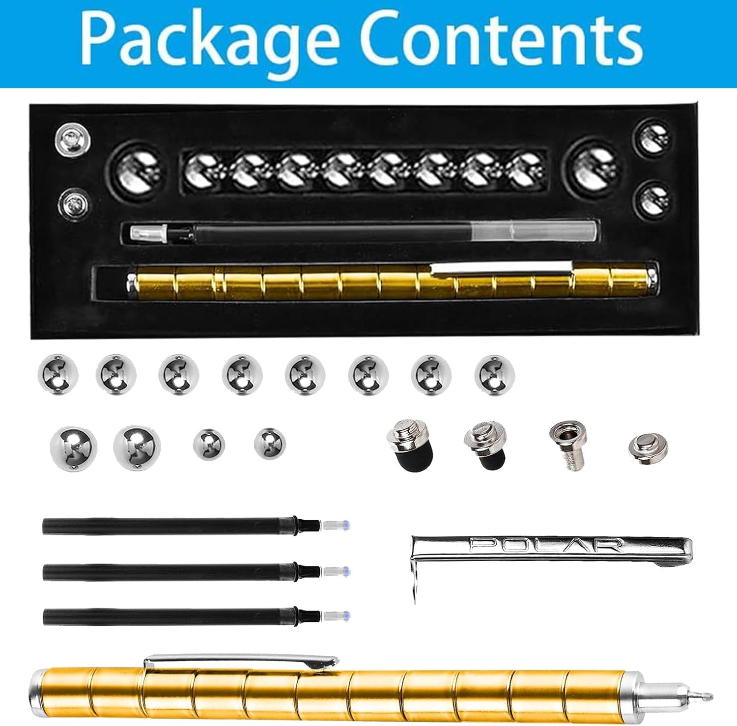 Complete Package: The fidget pen gift set includes 13 magnetic rings,10 large steel balls,2 small steel balls, 2 pen refills,2 touch screen pen tips,and a gift box