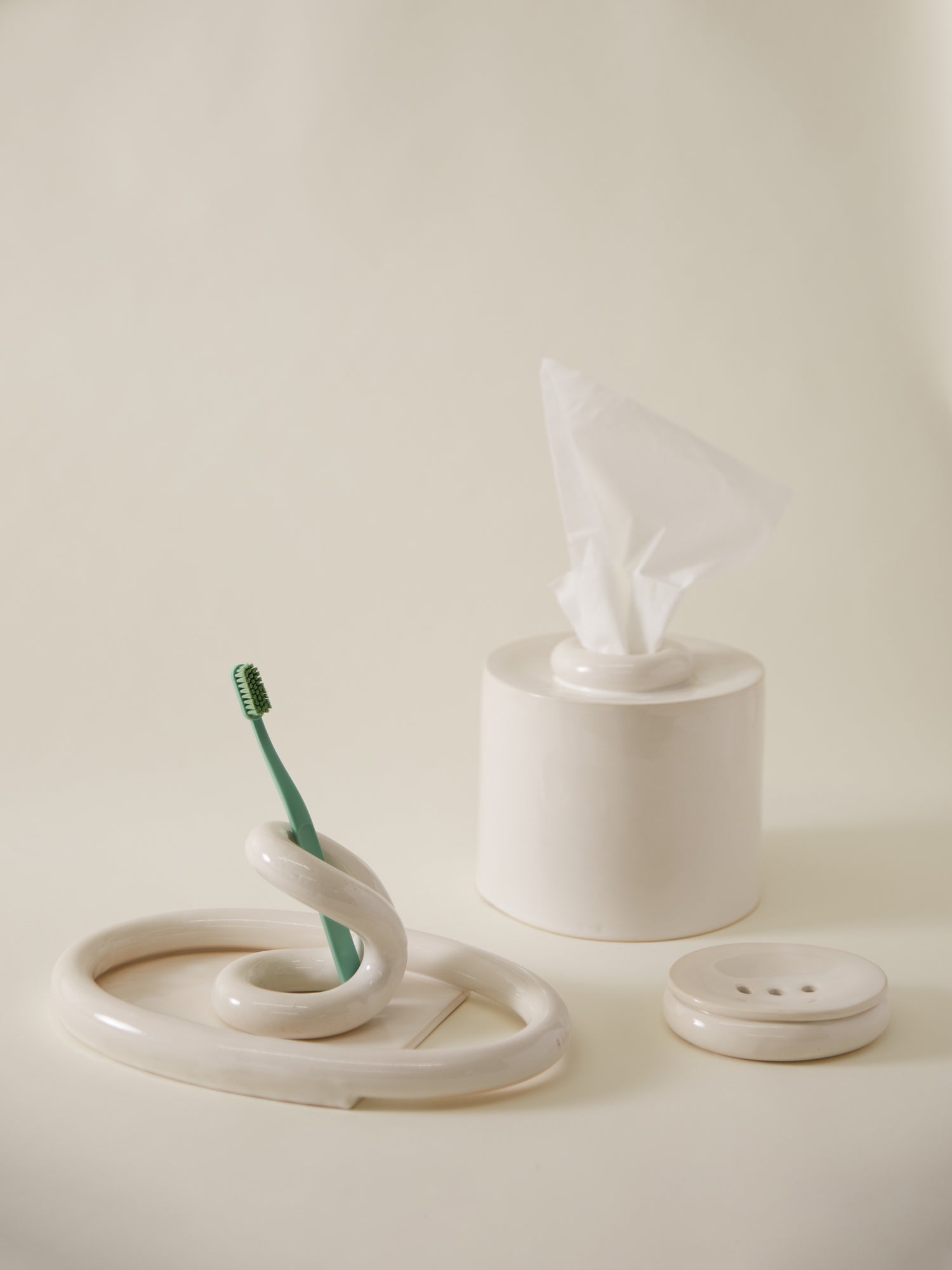 A chunky coiled toothbrush holder. Ood is here to keep your teeth cleaning device safe in its curved embrace. It’s also great to hold pens, makeup brushes, anything similar to that size and shape, really!