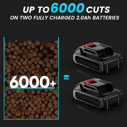 โ ใ2*2.0ah Battery.No Break-off Anymoreใ Our electric pruning shears come with two 2.0ah batteries and a fast charger. Each charge provides 6-8 hours of working time. allowing you to cut approximately 6000 branches. With the advantage of having two batteries. you can work non-stop in your gardening without worrying about battery issues.