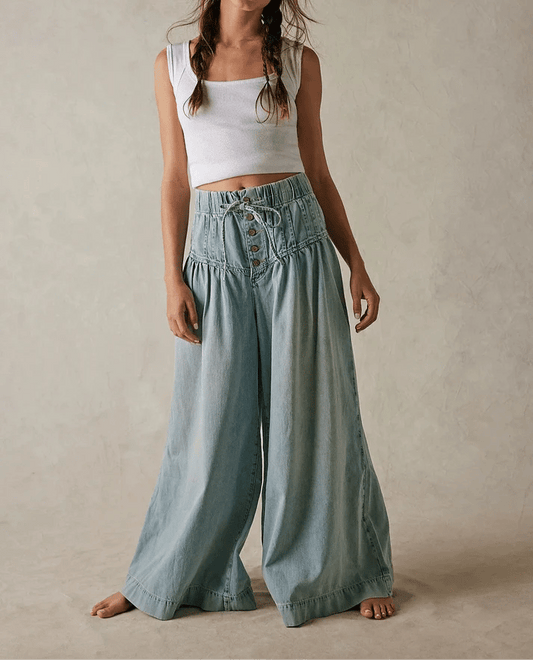 ✨Patchwork Denim Elastic Drawstring Wide-Leg Pants