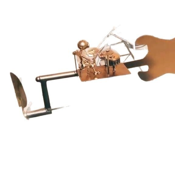 Our handmade metal drummer windmill is completely hand-welded and crafted with care. When the wind turns the windmill at the back, it drives the drummer to drum – the stronger the wind, the faster the beats. We have also replaced the traditional arrow pointing forward with a unique guitar-shaped design that adds a playful musical touch.